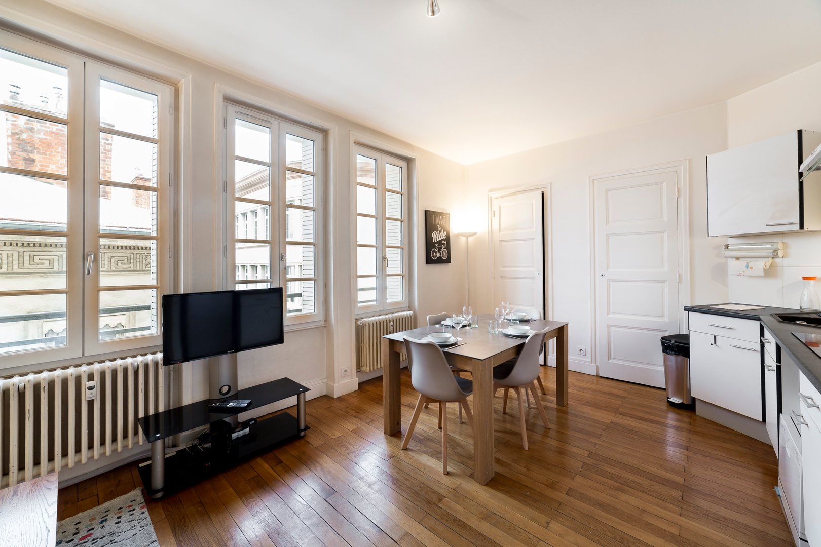 Ravissant studio de 23m² pour 2 personnes équipé d'un lit 140x200 rabattable. En plein centre de Lyon dans le quartier des Cordeliers, à 2 minutes du métro. Pied à terre idéal pour un séjour au c?ur de Lyon. Tout est accessible à pied avec tous les commerces nécessaire à proximité.