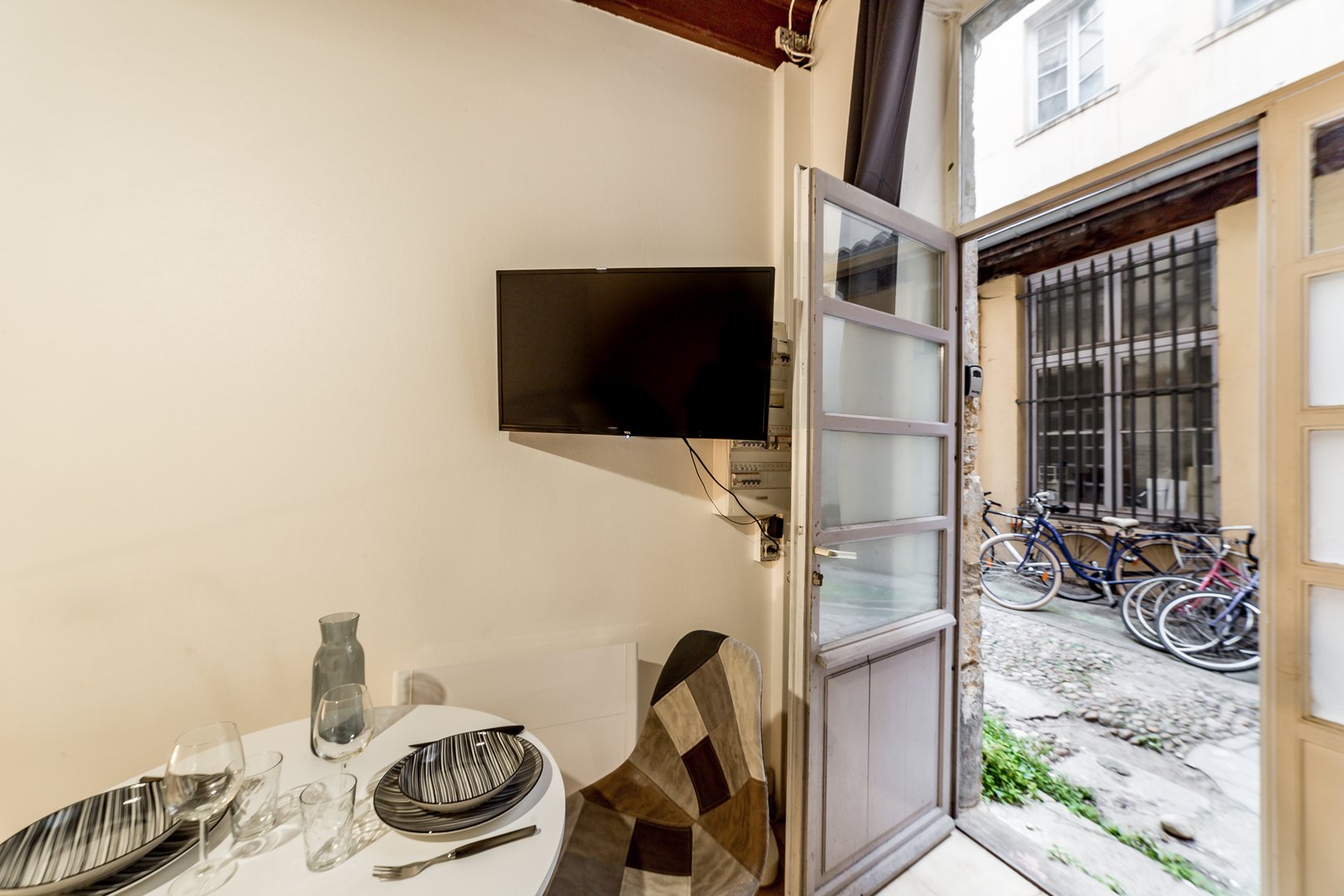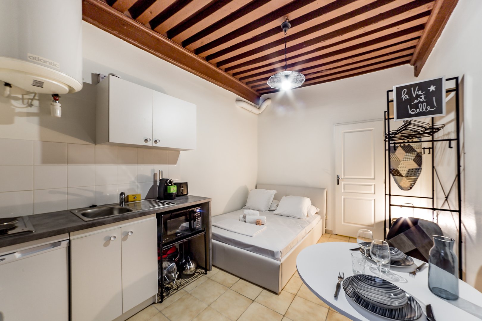 Entre Hôtel-de-Ville et la Croix-Rousse, dans les célèbres pentes et ses nombreux bars, restaurants et commerces à l'esprit bohème, découvrez un cosy studio en RDC sécurisé sur cour donc au calme. Idéalement placé pour visiter la ville à pieds et à deux pas du métro, le Cosy Canut accueille de 1 à 2 personnes, de quelques nuits à plusieurs semaines.