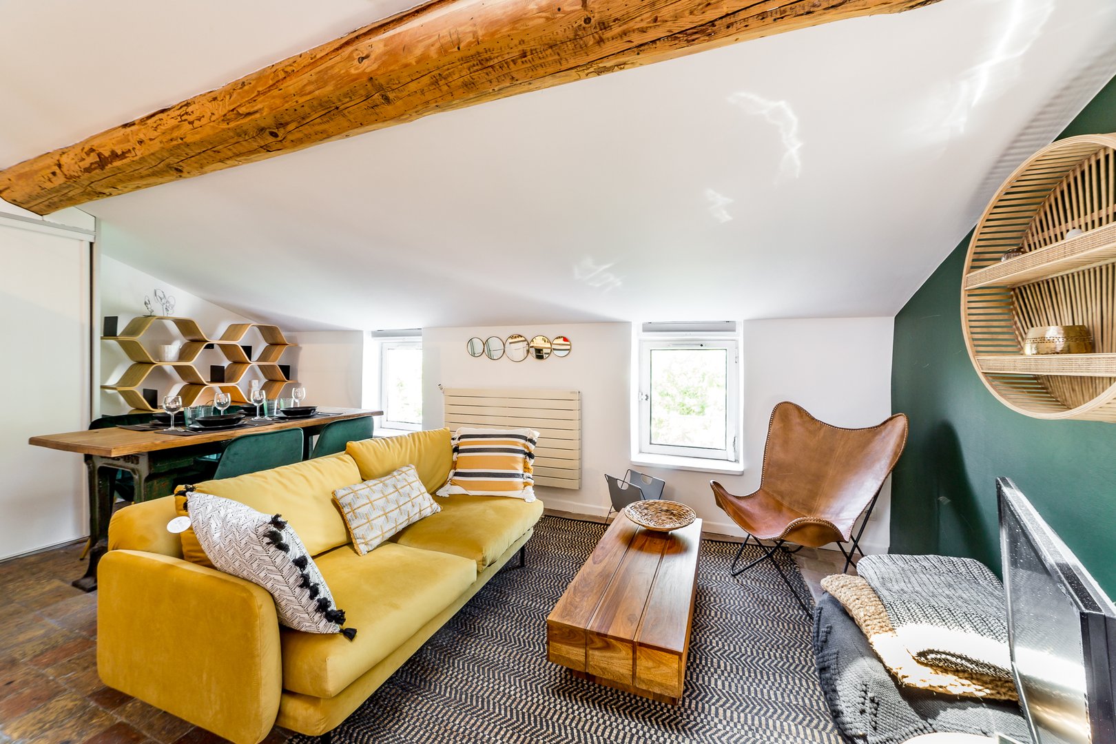Profitez d'une magnifique vue sur la Saône depuis ce bel appartement de 50m² de type loft avec mezzanine. Entièrement équipé, décoré avec goût et avec tout le confort dont vous avez besoin. Idéal pour un séjour touristique ou professionnel pour 2 personnes. Proche de tous les commerces à proximité et des transports.