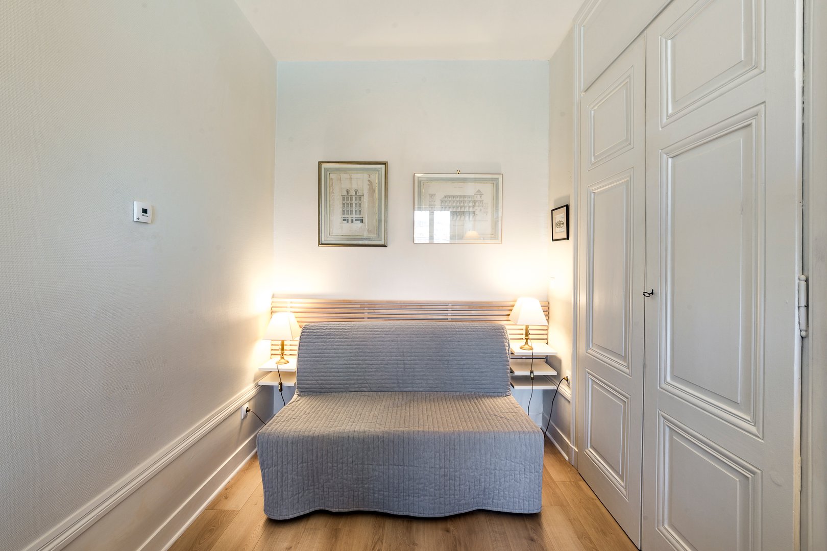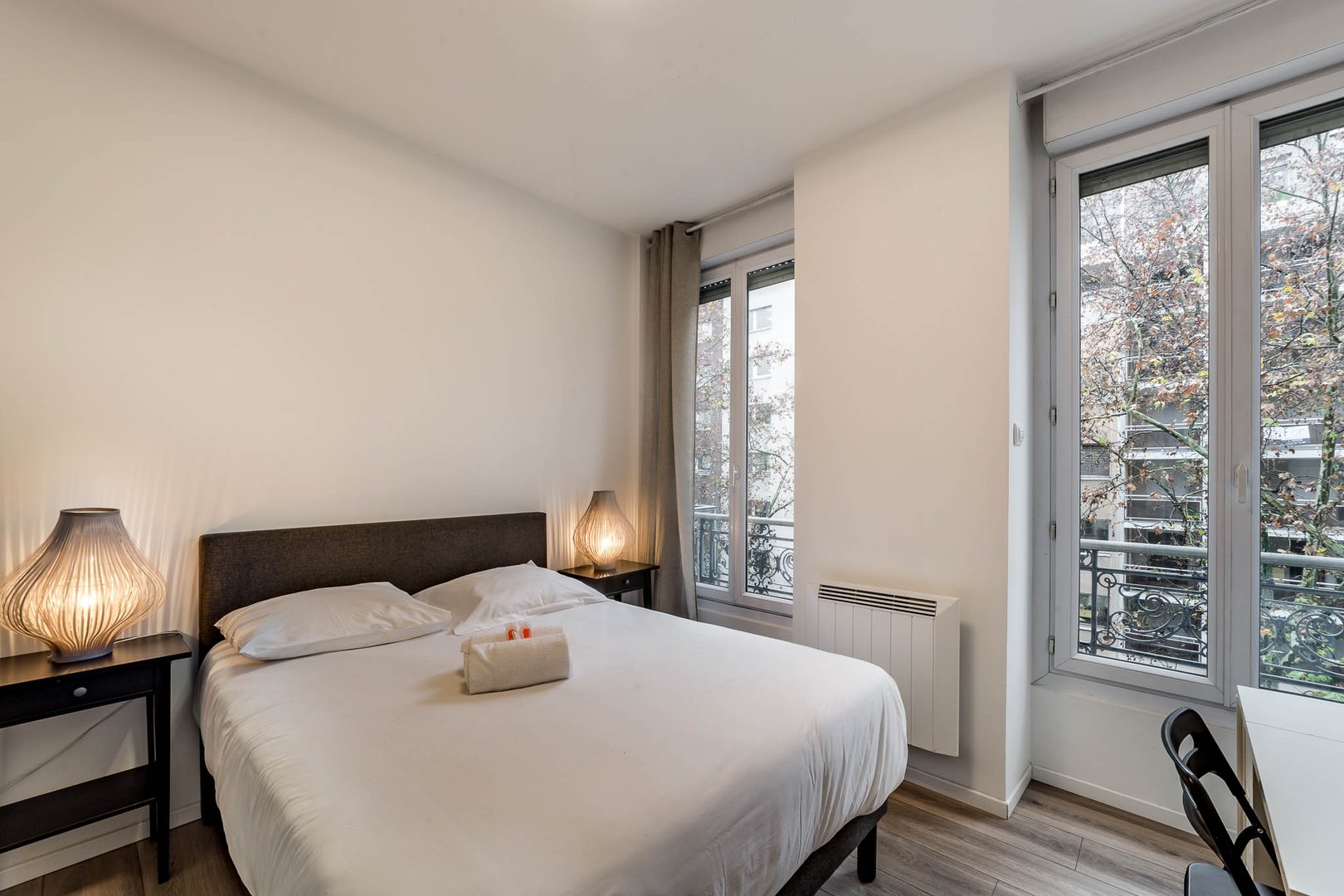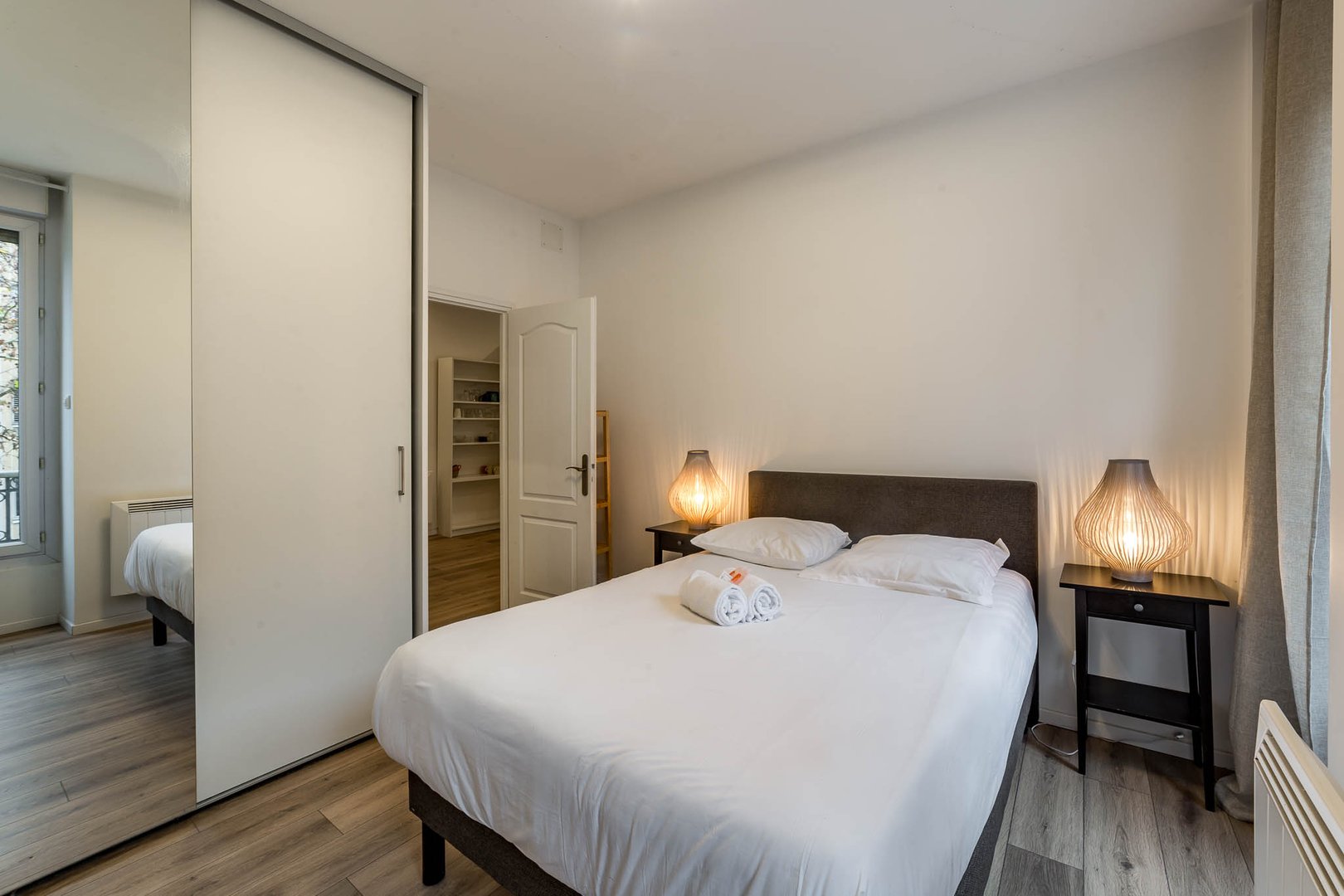 Appartement avec deux chambres, lit de 160x200. Cuisine toute équipée, balcon sans vis à vis avec vue sur l'église Saint-Bernard. TV/Wifi à disposition.
