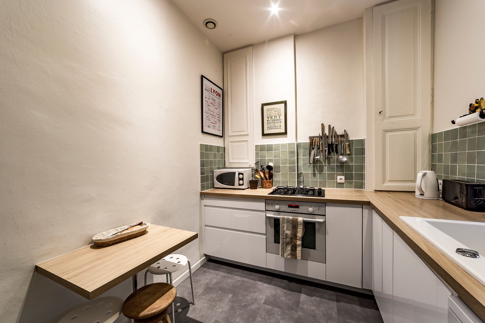 Bel appartement de 33m², lumineux, tout équipé avec un coin nuit en mezzanine. Idéal pour un séjour de courte durée à Lyon, en famille, pour le travail ou entre amis. Très bien situé, profitez du quartier avec tous ses commerces à proximité rendant votre séjour encore plus pratique et agréable.