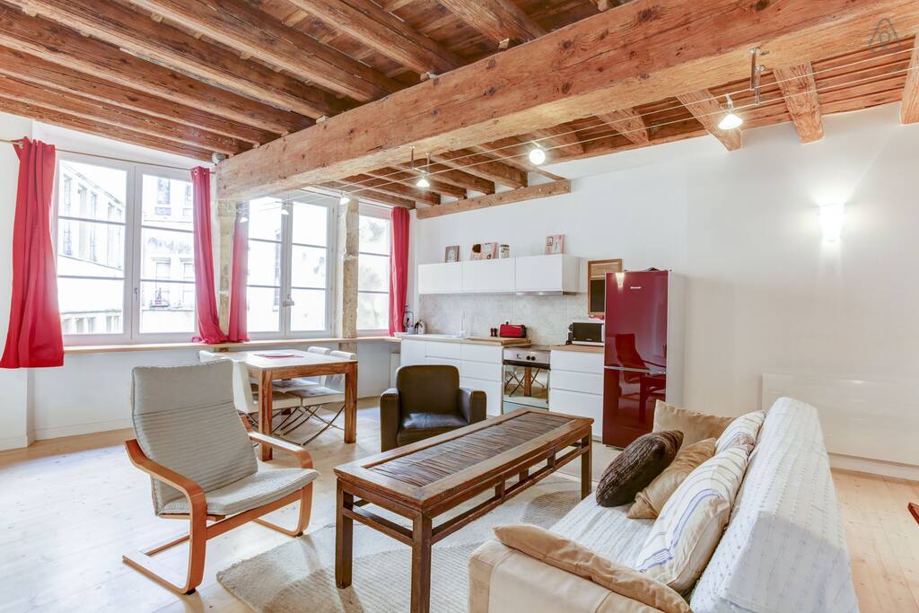 En plein c?ur du quartier historique du Vieux Lyon avec ses poutres en bois apparentes, ce magnifique appartement de 60m2, avec 2 chambres pour 4 personnes au 2ème étage donnant sur cour et particulièrement calme vous séduira à coup sûr ! Idéalement situé, vous aurez tout à proximité pour passer un séjour de qualité.