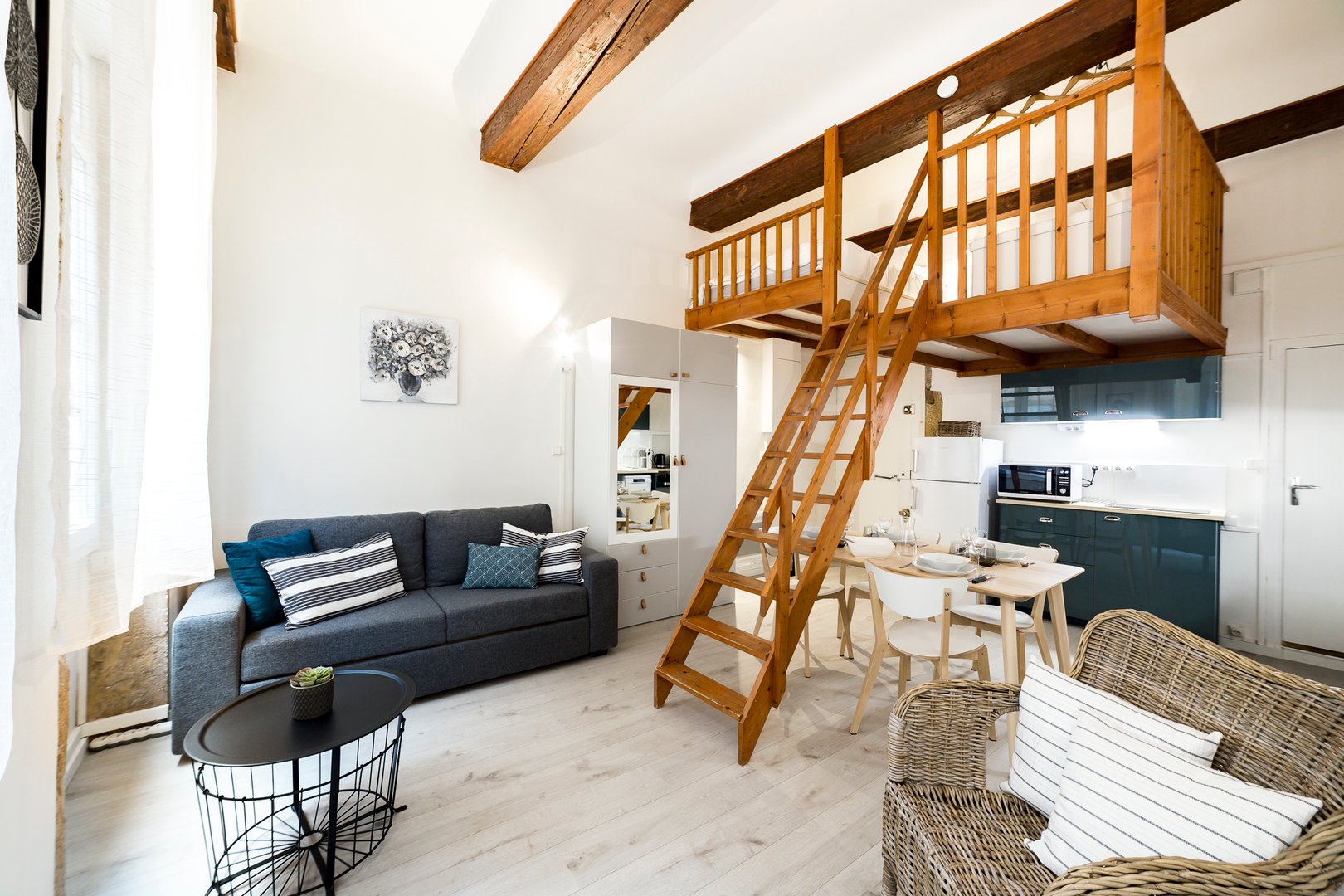 Bel appartement de 33m², lumineux, tout équipé avec un coin nuit en mezzanine. Idéal pour un séjour de courte durée à Lyon, en famille, pour le travail ou entre amis. Très bien situé, profitez du quartier avec tous ses commerces à proximité rendant votre séjour encore plus pratique et agréable.